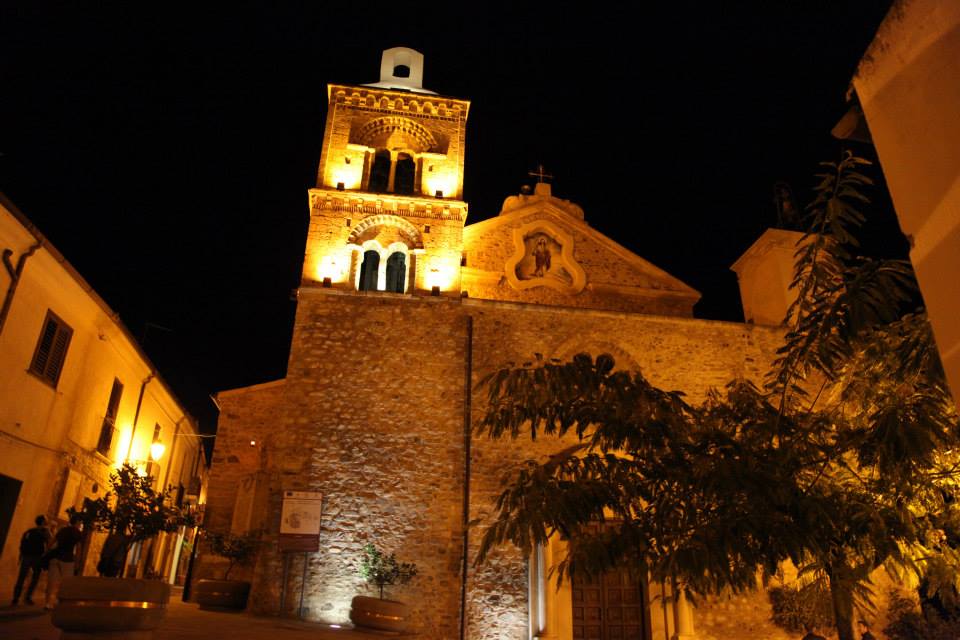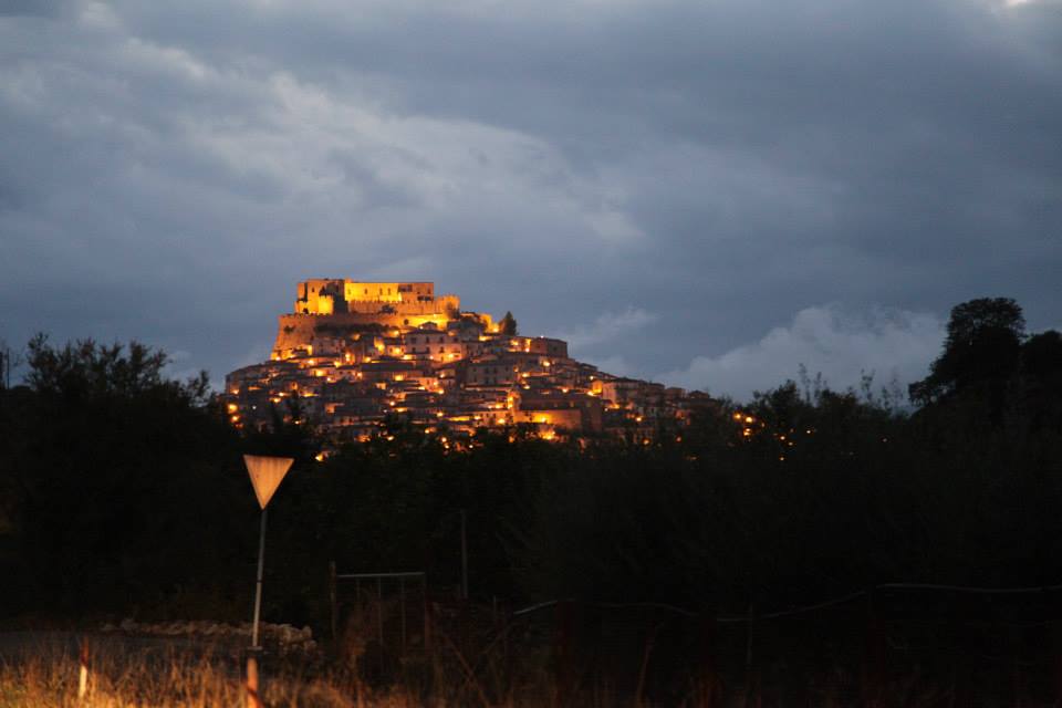 Approaching Rocca Imperiale at night.